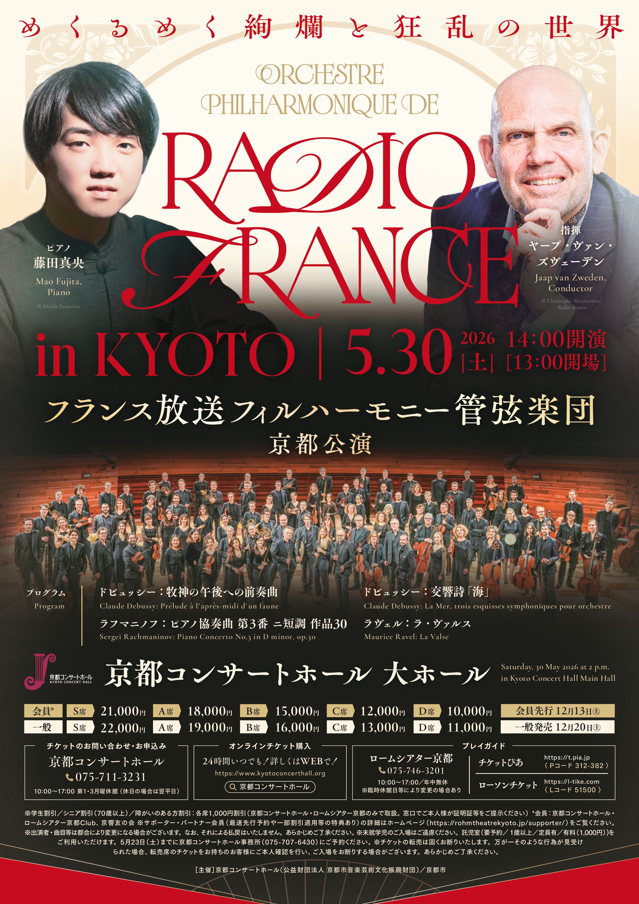 フランスの公共ラジオ放送局の専属オーケストラ「フランス放送フィルハーモニー管弦楽団」。同団の本拠地であるパリは、20世紀初頭に「芸術の都」としてかつてない繁栄を迎えましたが、第一次世界大戦を境に急速に陰りを帯びていきます。本公演では、そんな絢爛から狂乱へと移りゆく時代に作曲された、フランス音楽とラフマニノフの傑作をお届けします。名匠ズヴェーデンと世界から注目を浴びている藤田真央と、フランスの名門との共演に、どうぞご期待ください。