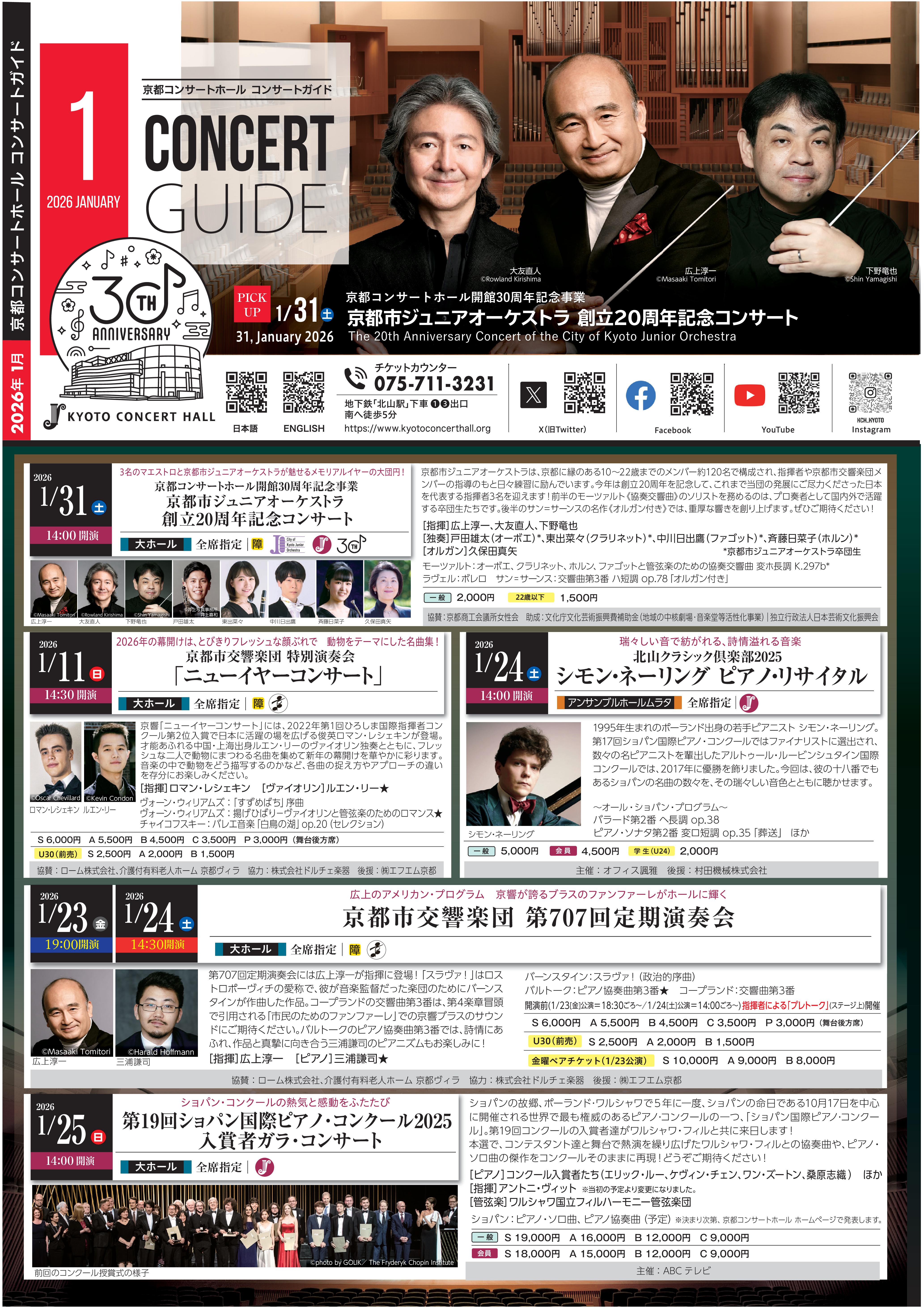 京都コンサートホール コンサートガイド1月号が発行されました。