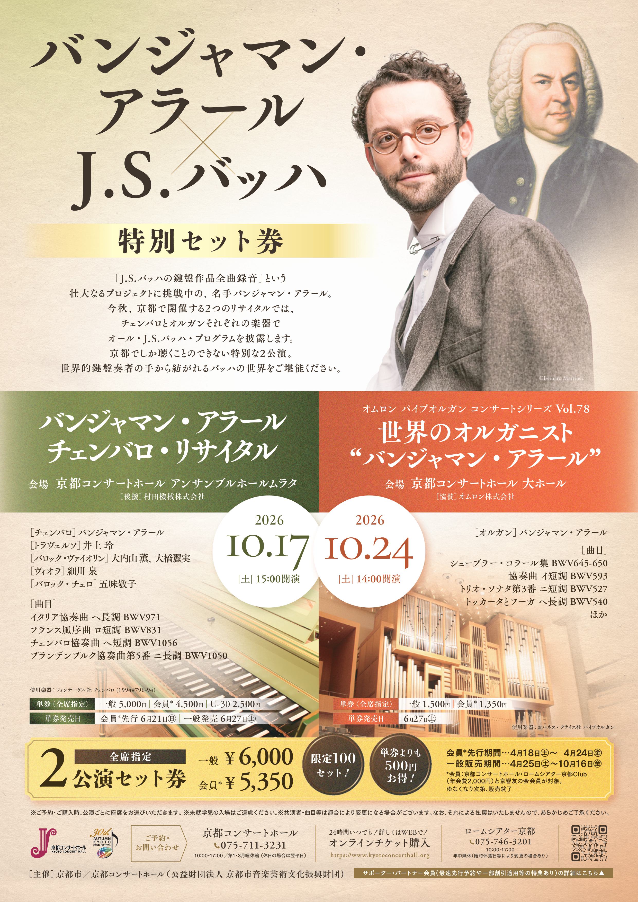 「バンジャマン・アラール×J.S.バッハ」特別セット券のご案内